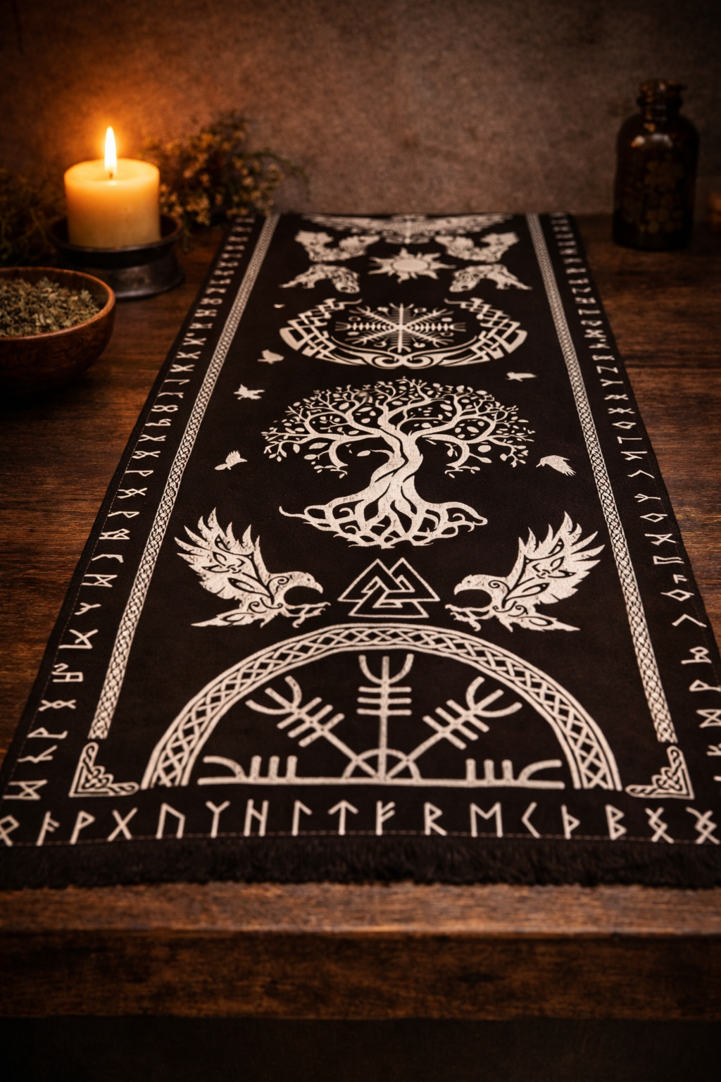 Avoid overly printed “Viking” designs or loud symbolic patterns unless they genuinely mean something to you. A plain cloth often carries more presence than one covered in imagery.
