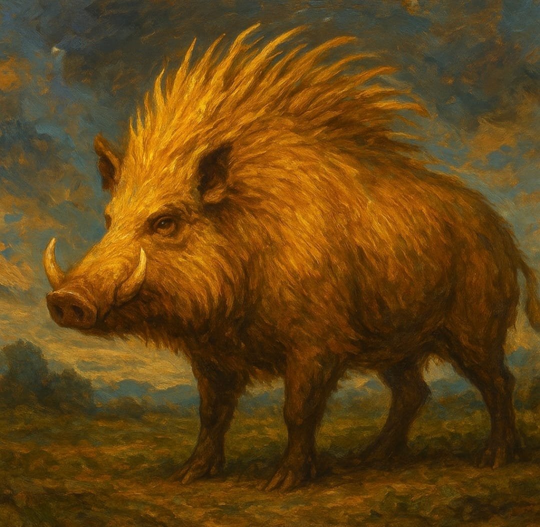 That spark took form as a boar whose bristles shone like the first sunrise: Gullinbursti, the Golden-Bristled, the Ever-Luminous, the one who runs faster than fear and brighter than any darkness.